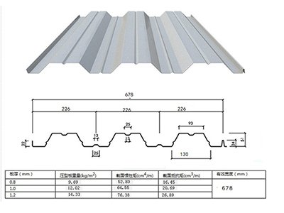 【品名解讀】yxb51-226-678樓承板,51代表波峰的高度51mm,226代表波峰間的寬度226mm,678指的是板材有效跨度,也就是使用寬度。